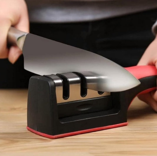 (3X1) AFILADOR DE CUCHILLOS MANUAL 3 NIVELES + EBook Recetas Parrilleras (Gratis)